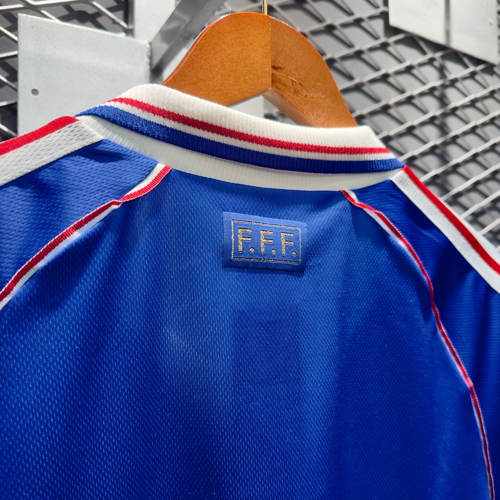 Mẫu áo huyền thoại của đội tuyển Pháp tại World Cup 1998, nơi họ lần đầu tiên ngôi vô địch trên sân nhà. Mọi khía cạnh, từ cổ áo, bo tay áo, họa tiết sọc cho đến cách phối màu đã biến chiếc áo này trở thành một thiết kế hoàn mỹ.