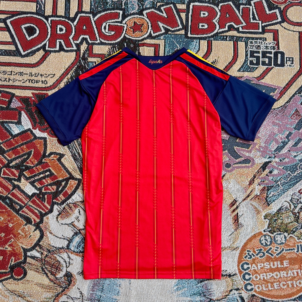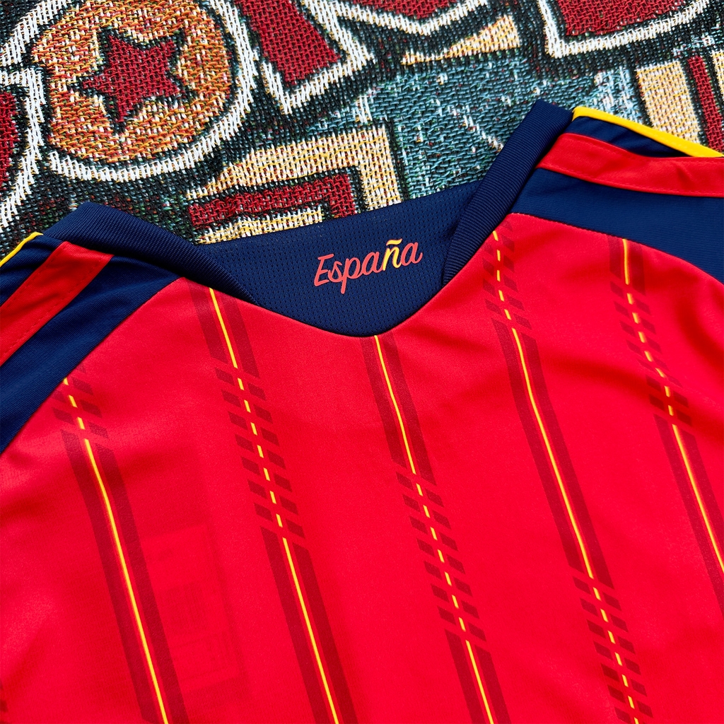Áo sân nhà của đội tuyển Tây Ban Nha tại World Cup 2026 nổi bật với ba màu sắc truyền thống đỏ, vàng và xanh đen đậm được phối cực kỳ hài hòa.