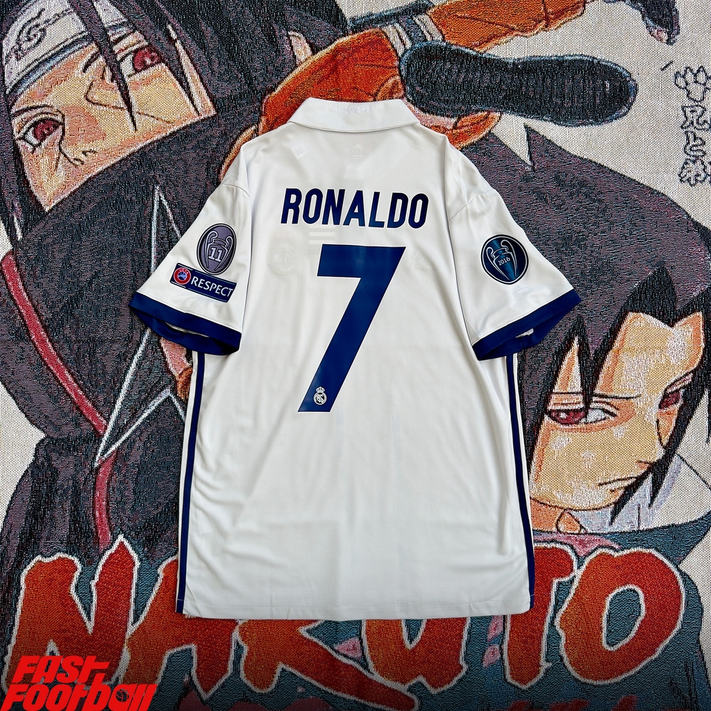 Áo sân nhà Real Madrid năm 2016/17 bên cạnh thiết kế tuyệt đẹp, sang trọng với cổ áo và sọc Adidas chạy dọc dải sườn, còn là mẫu áo chứng kiến đội bóng hoàng gia làm nên lịch sử khi bảo vệ thành công ngôi vương Champions League. Với namesets Cristiano Ronaldo, chiếc áo này có thể gợi nhớ đến màn trình diễn đỉnh cao của huyền thoại người Bồ năm đó, đặc biệt là màn ăn mừng ngồi lên bảng quảng cáo kinh điển.
